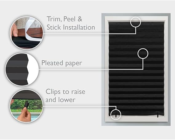 Redi Shade Inc 1617201 Original Blackout Pleated Paper Shade Black, 36” x 72”, 6-Pack